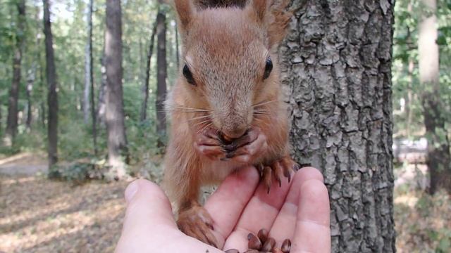 Сначала кормлю одного бельчонка, потом другого