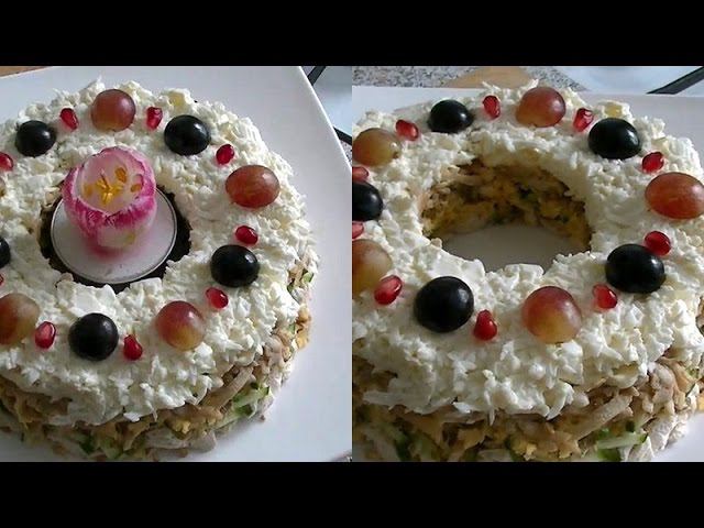 Праздничный салат "Надежда" с курицей и сыром