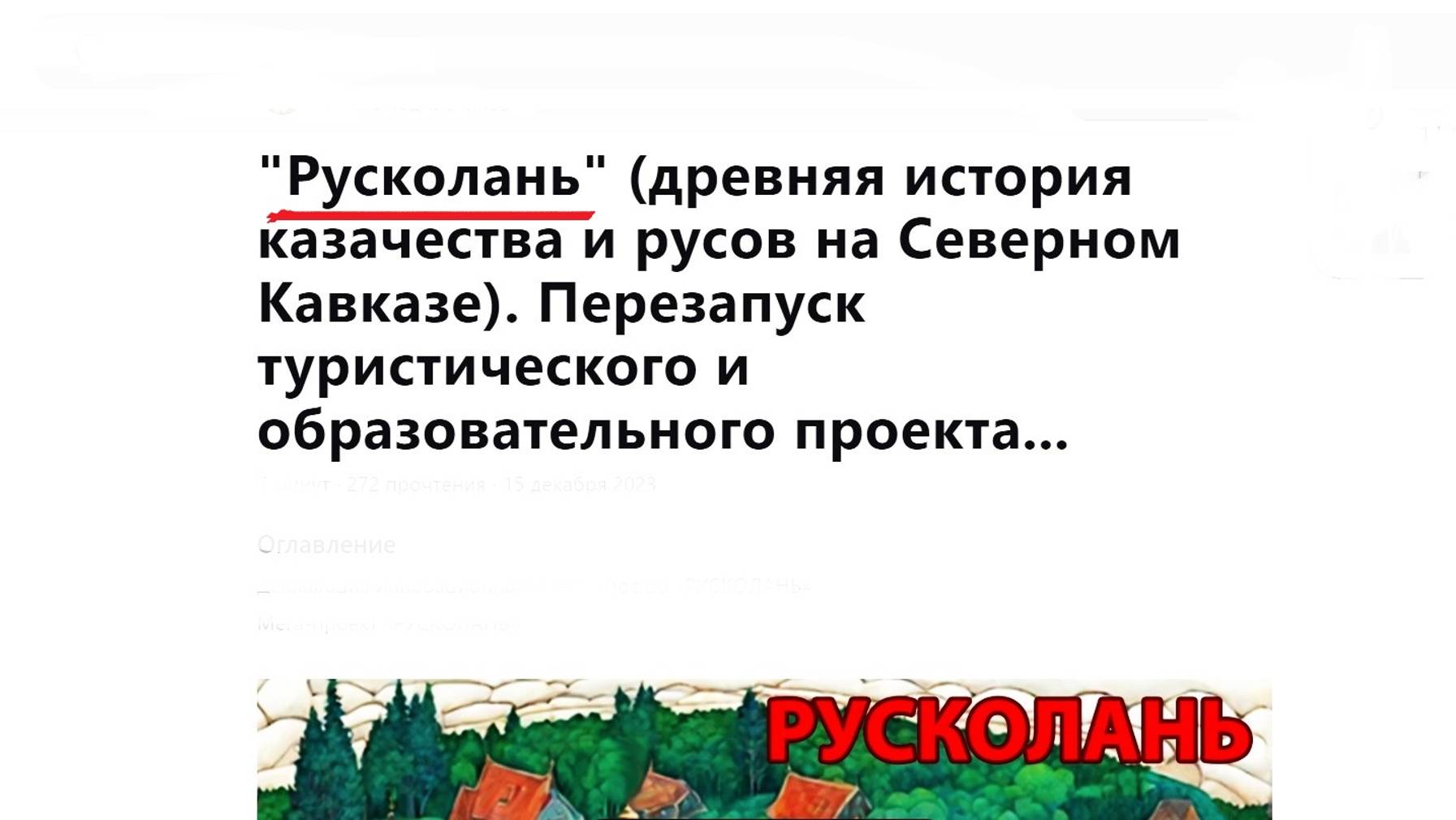 РУСКОЛАНЬ - древня "изТОРия"(прошлое наСЛЕДие) РУСов и КАЗАЧЕСТВА на Северном Кавказе.
