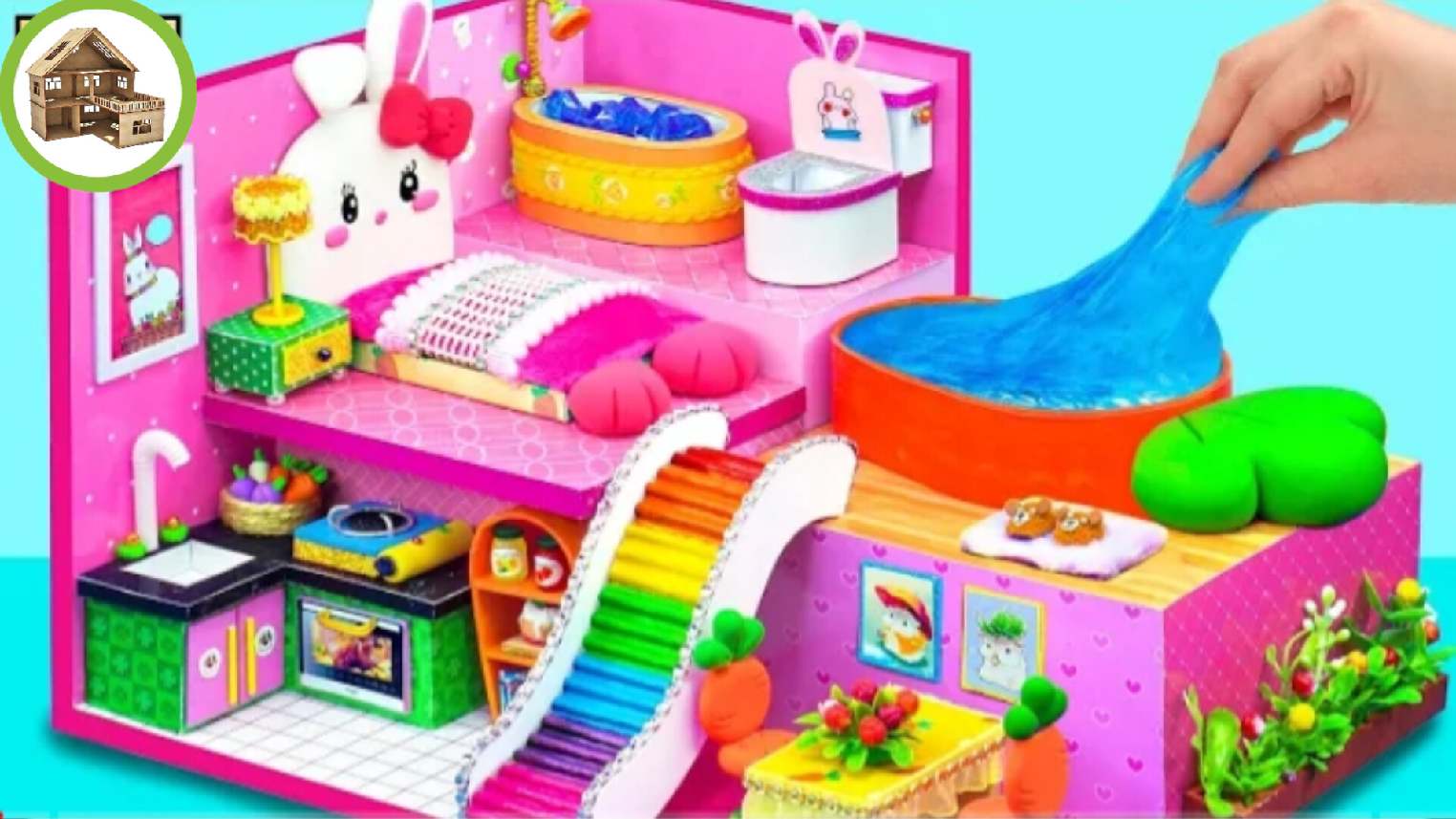 Милый домик для кролика с бассейном, морковным бассейном и цветной лестницей из картона /148