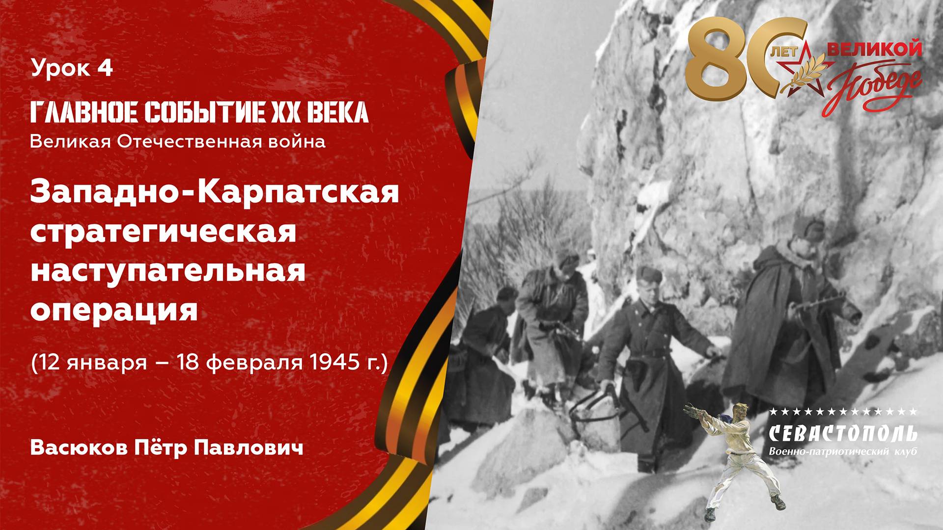 Видеоуроки и Интернет-Чемпионат "80 лет Великой Победе" Урок №4. Западно-Карпатская наступательная операция (12 января - 18 февраля 1945 г.) Урок ведет Васюков Петр Павлович, кандидат исторических наук, доцент, полковник в отставке, г.Москва.