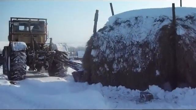Перемещение скирды на санях.