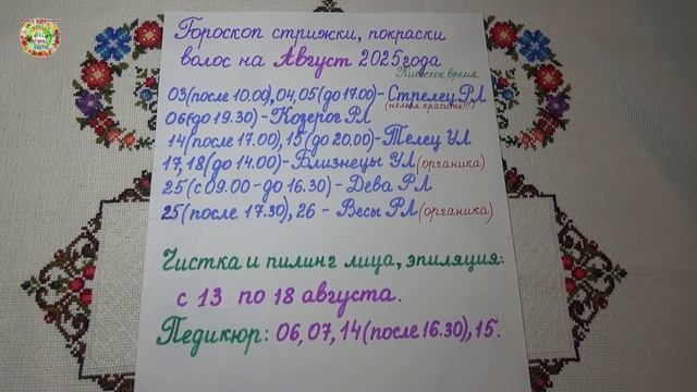Лучшие дни для стрижки и окраски волос в августе 2025 года! ************************* Авторы канала Раиса Горяченко и Александр Волик по просьбе подписчиков подготовили гороскоп стрижки и покраски волос, эпиляции и педикюра в августе 2025 года в видео "Лучшие дни для стрижки и окраски волос в августе 2025 года!" ************************* ► Подпишись на канал прямо сейчас! ➡️ https://vk.cc/9tBCvj и ОБЯЗАТЕЛЬНО нажмите на колокольчик (чтобы получать важные советы раньше всех) Подписка на наш канал "Раиса Горяченко: дача, сад, огород, цветы" означает дружбу между нами. Мы становимся с этого момента друзьями. И это же ХОРОШО! Ставьте лайк и пишите комментарии под этим видео. Именно таким образом Вы оплачиваете наш труд для Вас! Благодарим Вас! ► Смотрите другие интересные видео и советы от Раисы Горяченко на нашем канале в плейлистах: Томаты: секреты успешного выращивания, посадки и ухода, вредители и болезни томатов: https://vk.cc/9tBGfp Огурцы: выращивание, посадка, уход. В открытом грунте и теплице: https://vk.cc/9tBHsd Заготовки на зиму: https://vk.cc/9tBI0U Корнеплоды: https://vk.cc/9tBIQY Садоводство: https://vk.cc/9tBJGI Советы от Раисы Горяченко: https://vk.cc/9tBKIm Теплицы: выращивание овощей в теплице: https://vk.cc/9tBN8m Картофель: https://vk.cc/9tBP6D Другие интересные видео на канале Раисы Горяченко: https://vk.cc/9tBPG6 Когда нельзя подкармливать растения в августе? https://www.youtube.com/watch?v=KxtlhYL-P38&list=PLfl8bezpQQSD2eb-v_iOHam4HEQmKvMOj ---------------------------------------- Мы в социальных сетях: ➥ FC: https://www.facebook.com/r.goryachenko https://www.facebook.com/raysadok ---------------------------------------- #РаисаГоряченко #Раиса_Горяченко