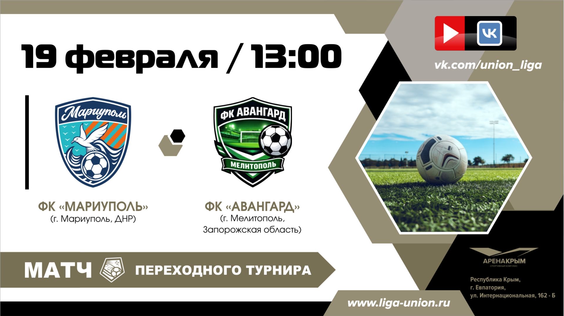 Первый матч Переходного турнир Объединённого чемпионата по футболу "Содружество"-2026 | ФК "Мариуполь" (г. Мариуполь, ДНР) - ФК "Авангард" (г. Мелитополь) | 19.02.2026 | 13:00
