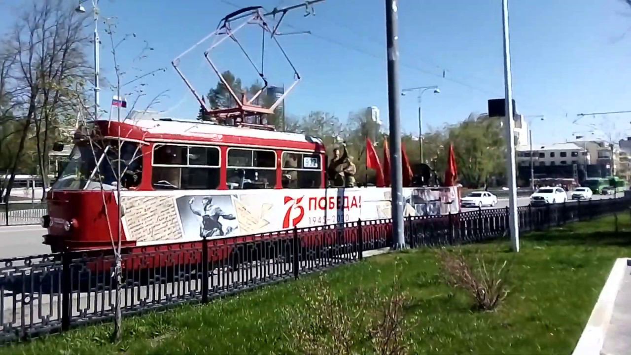 Трамвай Татра Т3SU в Екатеринбурге, праздничный вагон к 9 мая.