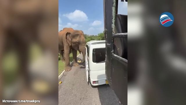 Дикий слон атаковал авто с российскими туристами на Шри-Ланке