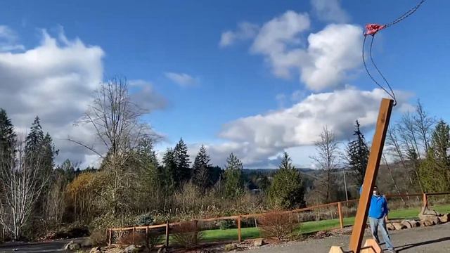 My nephew Walter lead the young mens group (from the Rainier Ward of the Church of Jesus Christ of Latter Day Saints) in an activity to build a trebuchet this morning. Here is one of the launches of a pumpkin.