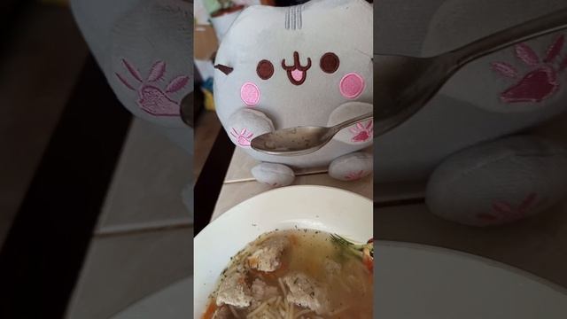 Часть 2. Пушин кушает суп. Обязательно повторяйте за ним. 🙏 🩷🩷🩷🩷🩷