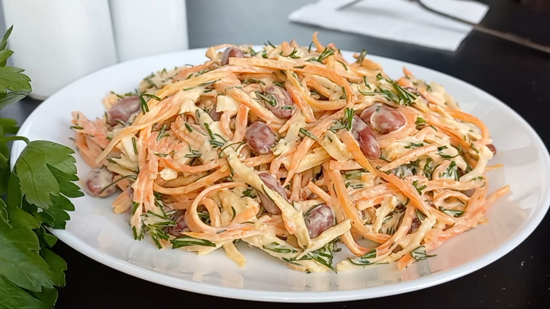 Друзья, всем привет! Сегодня готовим простой в приготовлении и очень вкусный салат с удачным сочетанием ингредиентов. Подходит для любого застолья. Рецепт: Куриная грудка - 150 гр. Фасоль консервированная - 1 банка. Корейская морковь - 100 гр. Чеснок - 2 зубчика. Зелень укропа. Соль, перец по вкусу. Для заправки майонез или сметана, по желанию. Радуйте своих любимых и близких. Приятного аппетита! ***************************** Друзья Если вам понравился рецепт поставьте👍или напишите комментарий. Ваши отзывы самая лучшая награда для меня. С уважением, Ирина!!! Подписывайтесь на канал и нажимайте на 🔔, чтобы получать уведомления о новых видео. #салат #простойсалат #вкусныйсалат