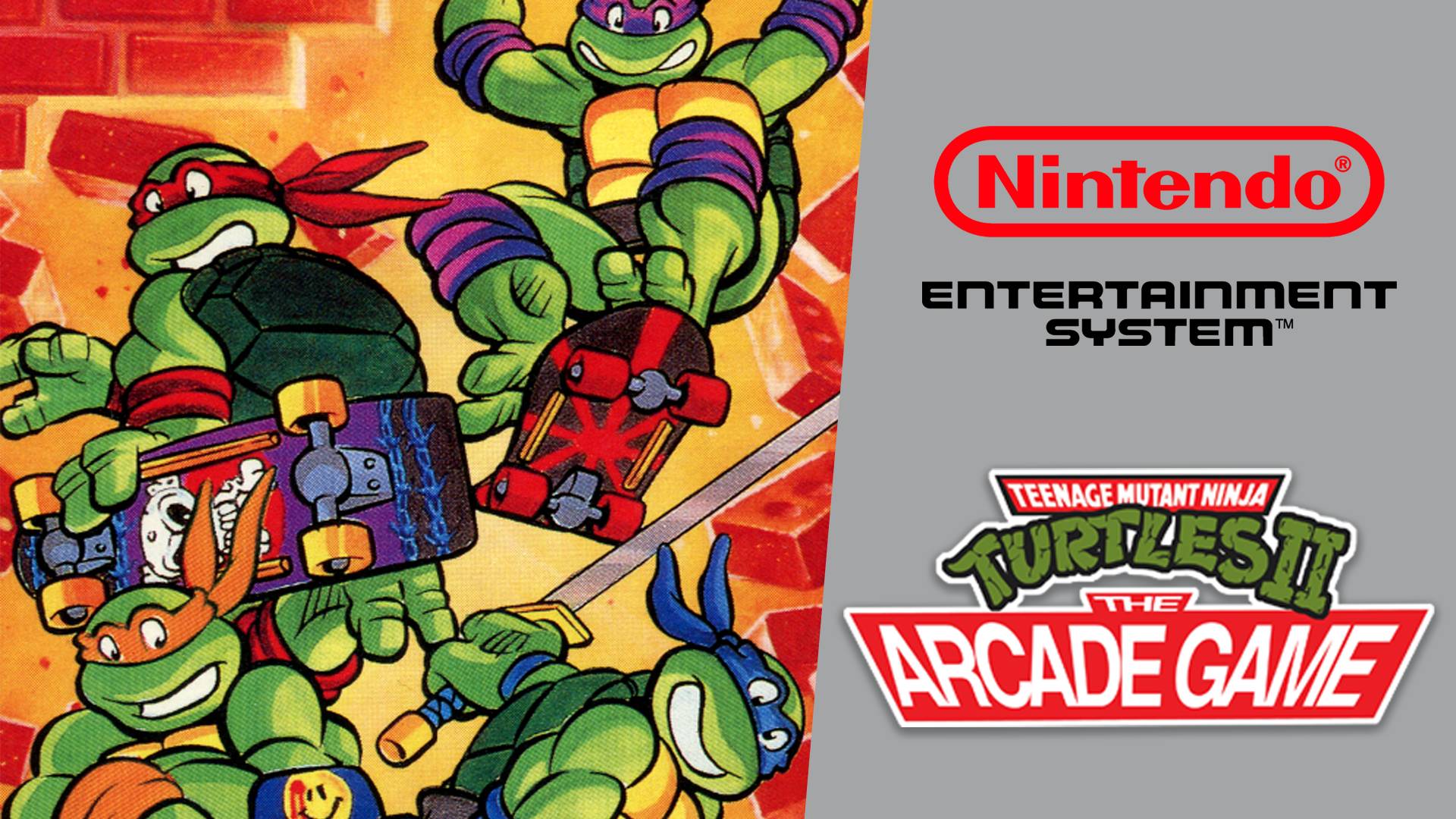Teenage Mutant Ninja Turtles, известная как Teenage Mutant Hero Turtles в Европе, и Teenage Mutant Ninja Turtles: Super Kame Ninja (яп. ティーンエイジ・ミュータント・ニンジャ・タートルズ 〜スーパー亀忍者〜 Ти:нэйдзи Мю:танто Ниндзя Та:торудзу Су:па: Камэ Ниндзя) в Японии — это сайд-скроллинговый beat 'em up, выпущенный Konami на аркадных автоматах в 1989 году. Домашняя версия игры была выпущена на различных платформах. Игра основывается на мультсериале 1987 года. Порт на NES Порт на NES вышел в декабре 1990 года в Северной Америке под названием Teenage Mutant Ninja Turtles II: The Arcade Game, 14 ноября 1991 года в Европе под названием Teenage Mutant Hero Turtles II: The Arcade Game и 7 декабря 1990 года в Японии под названием Teenage Mutant Ninja Turtles. В Европе и Северной Америке порт значился как вторая часть в связи с тем, что на NES уже была выпущена игра под этим названием. В Японии первая часть выходила под другим названием. Порт включает два новых уровня (первая часть третьего уровня и весь шестой уровень), особенностью которых являются новые противники, включая два новых босса. Оба персонажа были специально созданы для игры. Во второй части третьего уровня битва с Бибопом и Рокстеди была изменена на битву с Бакстером Стокманом. Игровой процесс Игра рассчитана на одного или двух игроков. В начале можно выбрать одну из четырёх черепашек-ниндзя: Леонардо, Рафаэль, Микеланджело или Донателло. В дальнейшем сменить главного персонажа будет нельзя. Черепахи незначительно различаются между собой по скорости и дальности удара. Сражаться предстоит против ниндзя клана Фут, маузеров, радиоуправляемых вертолётов и других персонажей, позаимствованных из мультсериала. Всего в игре 7 разнообразных сцен (уровней), в конце каждого из которых надо победить финального босса. Каждый финальный босс уникален, имеет собственные приёмы и алгоритмы движений, и, в отличие от обычных противников уровня, требует от одного до нескольких десятков попаданий для уничтожения. За каждого убитого противника, в зависимости от версии игры, даётся определённое количество очков. Набирая очки, можно зарабатывать дополнительные жизни. #nes #retrogames #turtles #tmntII