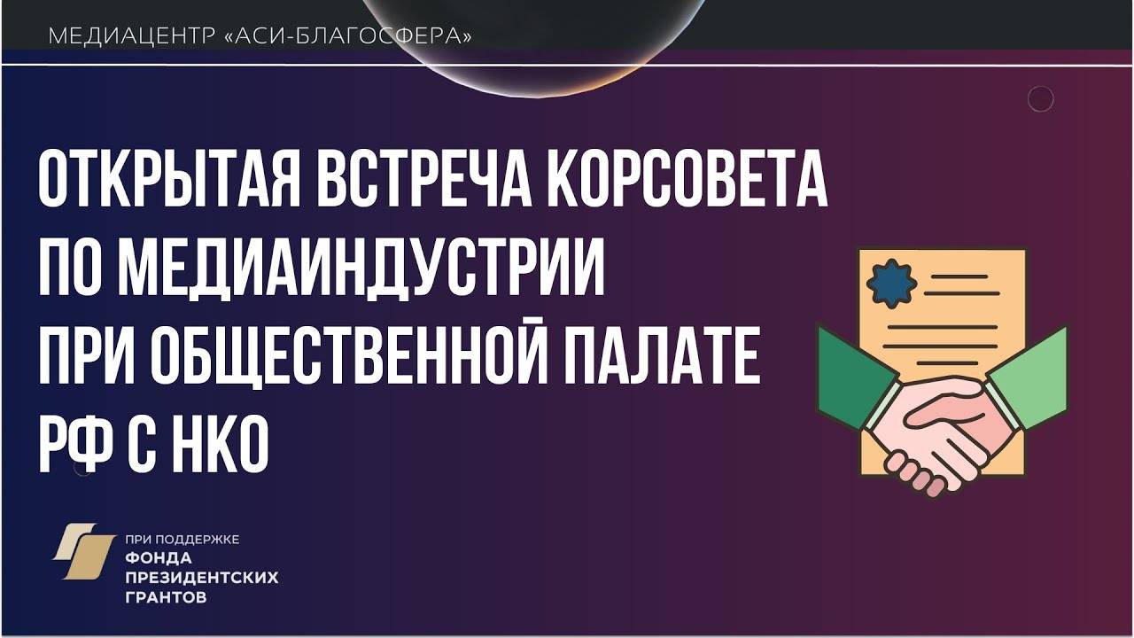 Медиаклуб «АСИ – Благосфера»: Открытая встреча Корсовета по медиаиндустрии при ОП РФ с НКО