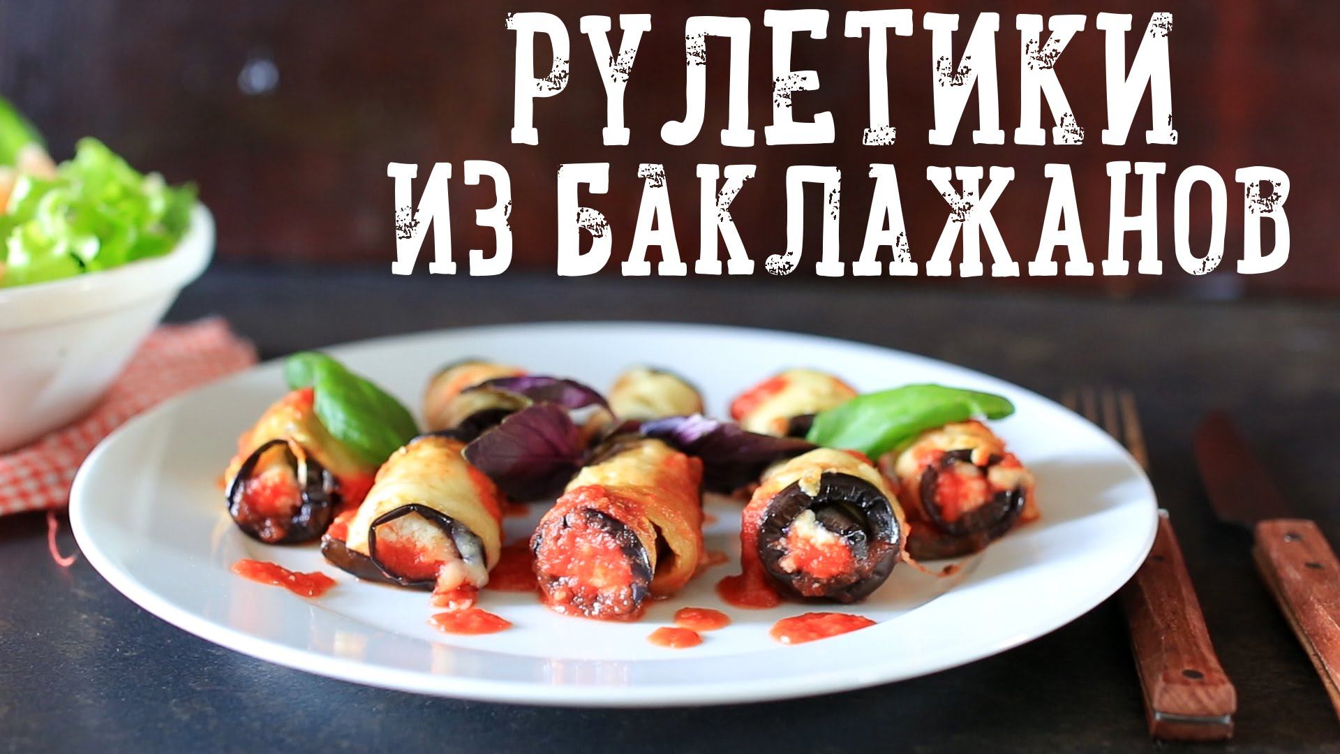 Рулетики из баклажана готовятся быстро, выглядят потрясающе и очень вкусны. Овощи, томатный соус и мягкий сыр — сочетание абсолютно беспроигрышное. Приготовление: Разогрейте духовку до 190°С. Разрежьте баклажаны вдоль на 11 ломтиков, примерно 0,5 сантиметра толщиной. Слегка смажьте ломтики баклажанов равномерно с обеих сторон оливковым маслом. В сковороде на среднем огне, обжарьте баклажаны от 2 до 3 минут с каждой стороны, пока она не начнет размягчаться, а затем отложите, чтобы ломтики остыли. В то время как ломтики баклажанов остывают, смешайте все ингредиенты для начинки в средней миске. Затем выложите 1 ч. л. начинки на край ломтика баклажана и сверните плотный рулетик, повторите со всеми ломтиками. Залейте форму для выпечки томатным соусом, выложите рулетики и сверху посыпьте моцареллой. Отправьте рулетики выпекаться в духовку на 15-20 минут до образования сырной корочки. Дайте рулетикам остыть 3-5 минут и подавайте к столу! Скачайте бесплатно наше новое вкусное приложение: на Android - http://goo.gl/ZqRLbD на iPhone - http://goo.gl/OP1RBD Подписывайтесь на канал - https://www.youtube.com/user/videobon... Наш английский канал "BA recipes" - https://www.youtube.com/user/barecipe... Bon Appetit в Telegram - https://telegram.me/bonappetit_bot Мы в социальных сетях: ВКонтакте: https://vk.com/bon.appetit Одноклассники: http://www.odnoklassniki.ru/bonapp Facebook: https://www.facebook.com/bono.appetito Instagram: http://instagram.com/bon_appetito Мой мир: http://my.mail.ru/community/bon.appetit/ iPad: https://itunes.apple.com/us/app/recep... iPhone - https://itunes.apple.com/ru/app/recep... Android - https://play.google.com/store/apps/de...