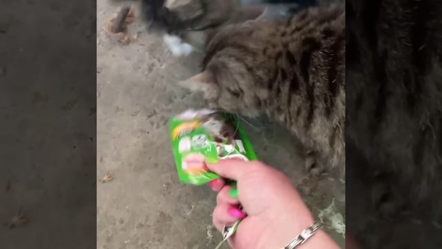 Котики уже знают, что волонтер принесет вкусненькое
