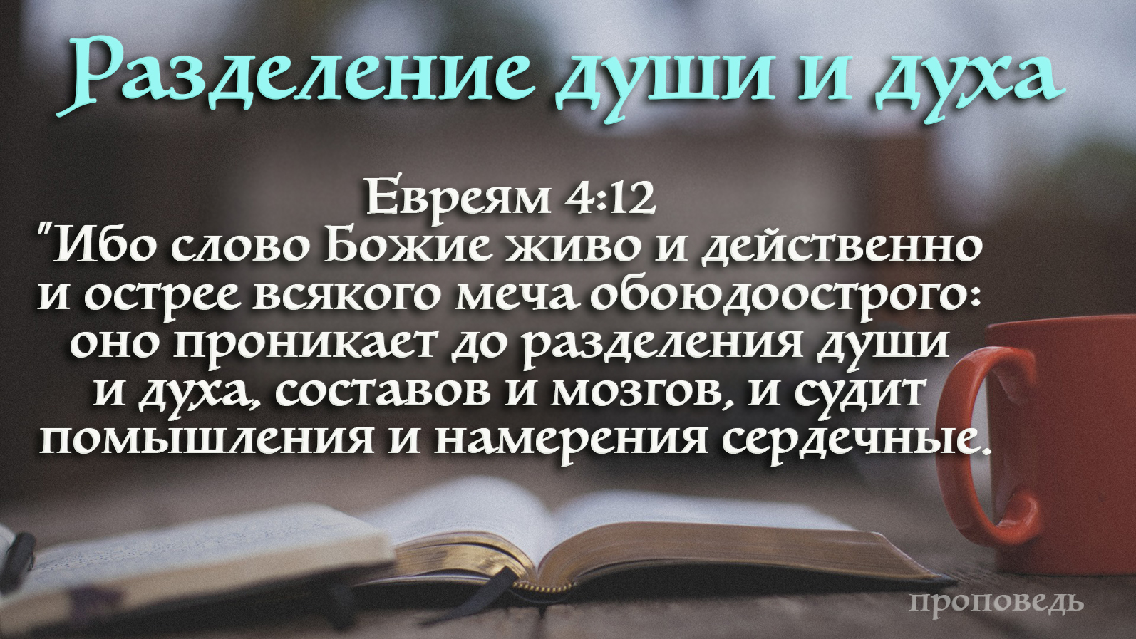Евреям 4:12 "Ибо слово Божие живо и действенно и острее всякого меча обоюдоострого: оно проникает до разделения души и духа, составов и мозгов, и судит помышления и намерения сердечные".