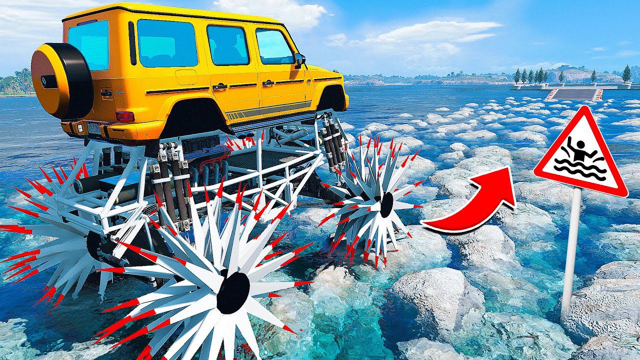 ПРОЕХАЛ ВОДНЫЕ КАМНИ на ГИГАНТСКОМ ГЕЛИКЕ на КОЛЮЧКАХ в ГТА 5 МОДЫ - ЭКСПЕРИМЕНТЫ в GTA 5 MODS