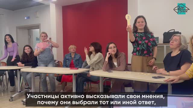 👩🎓 18 мая 2024 года в г. Москве прошла интеллектуальная игра «Умный ход», организованная специалистом «Дома глухих». В этот раз участницами стали женщины. 💢 Игра состояла из 4-х раундов: «История», «География», «Здоровье» и «Кулинария», и финала. Для участия прибыли 3 команды по 4 человека из Москвы и из области. Вопросы специально подбирались таким образом, чтобы не только освежить знания из школьной программы, но и дать возможность узнать новые интересные факты в игровой форме. 🎬👗⚽️ После перерыва на кофе-брейк состоялся финал. Победители: 🥇 «Девчата» 🥈 «Электросталь» 🥉 «Прометей» 🎁 Директор «Дома глухих», Максим Барсуков, лично поздравил победительниц и вручил призы. Такой формат игры не оставил никого равнодушным. Главное – не победа, а участие! ‼️ Это – не первая и не последняя интеллектуальная игра в Москве, следите за анонсами.