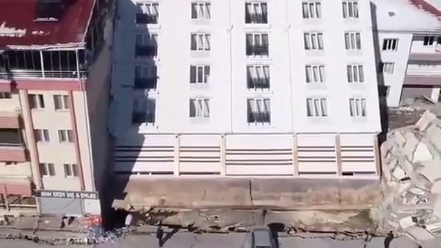 Здание упало набок во время землетрясения в Турции, февраль 2023.