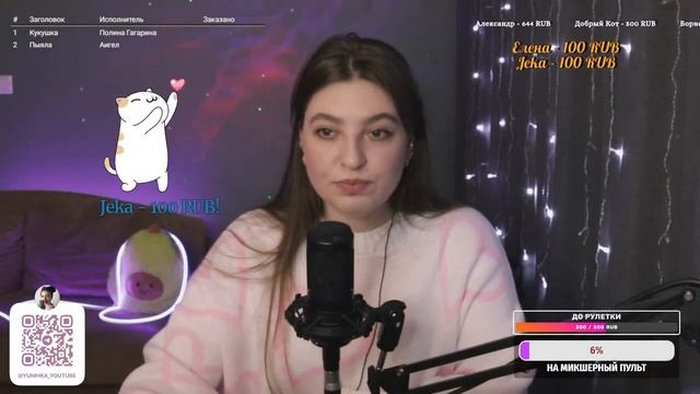 Привет, дорогой зритель! Меня зовут Юля, и я очень рада тебя видеть здесь на моем канале) Сегодня я провожу прямую трансляцию и поэтому прошу Тебя поддержать меня ну и конечно же петь песни вместе со мной Ссылка на донат ИЛИ если вы хотите увидеть свое сообщение на экране - https://www.donationalerts.com/r/yunihka Если просто хотите поддержать мое творчество номер карты СБЕР: 4276550062989176 Заказ песни вне очереди 100 р. ЧТО Я МОГУ СПЕТЬ ДЛЯ ТЕБЯ смотри тут ⭐ https://disk.yandex.ru/i/YTq-QLQ9VLuGvAhttps://www.streamersonglist.com/t/yliannohka/songs?f=New Вы так же можете получить сигну написав в чат "ХОЧУ СИГНУ" и забирать ее в телеграмме Так же сигна делается автоматически всем, кто отправил донат Хочу сказать огромное СПАСИБО всем донатерам и просто случайным зрителям! Я надеюсь Вам все понравится ❤️ ИЩИТЕ МЕНЯ ЗДЕСЬ: инстаграм (запрещен в РФ): https://www.instagram.com/yunihka/ (@yunihka) вк: https://vk.com/club211699663 Телеграмм: https://t.me/yunihka_youtube #стрим#караоке#разговоры#живойзвук#вокал#живойвокал#поем#петь#музыка#поемкараоке#петькараоке#cover#music#стрим#прямойэфир#караоке
