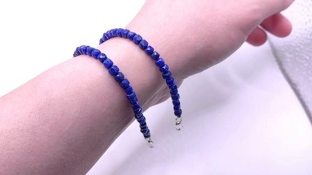 Браслет из бусин: Лазурит. На ювелирном тросике. Вид замка - карабин. Место добычи камня - Афганистан. 100% природный камень, без облагораживания. Размер бусин: ~4.5 мм. На запястье в обхвате: 1) - 17 см. 2) - 17 см. Б73