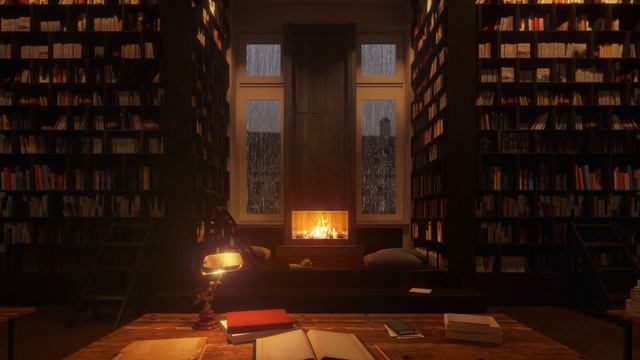 УЮТНАЯ дождливая библиотека с камином Видео создано для учебы, а не для сна