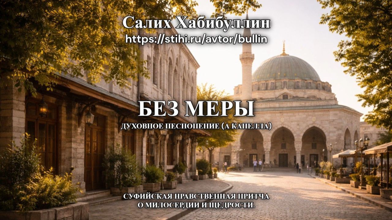 Иногда человеку нужна лишь горсть муки — а Всевышний посылает помощь без меры. Это духовное песнопение (а капелла) — притча о милосердии, щедрости и той любви, которая не ведёт счёт. Слушай сердцем: здесь — азан, тишина мечети и простой жест, меняющий судьбу. «Без меры» — о даре, который возвращается светом. ⚡ЧИТАЙТЕ СТИХ 📖 с моим авторским комментарием. https://stihi.ru/2025/12/19/6988 #поэзия #стихотворение #стихи #притча #поэт #автор #СалихХабибуллин #суфизм #философия #русская #лирика #духовность #милосердие #щедрость #добро #помощь #сострадание #ислам #вера #акапелла #acapella
