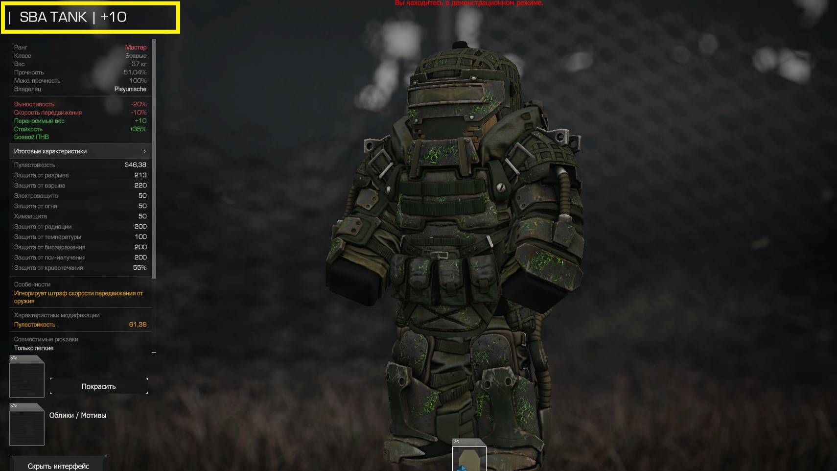Улей: пулестойкость 53% к ТАНКу (сборка для PVP)