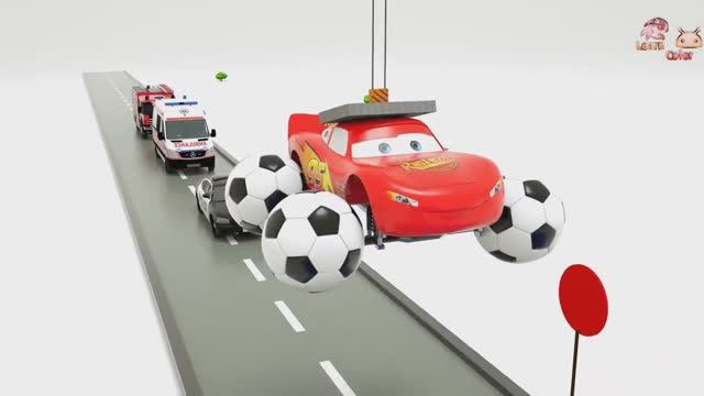 учим цвета с препятствия в виде резервуара с водой и грузовика с футбольным мячом и колесами