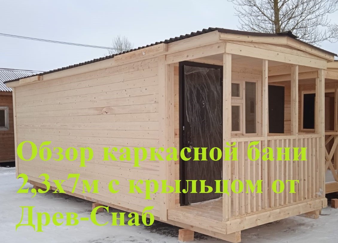 Обзор каркасной бани 2,3х7м с крыльцом от Древ-Снаб
