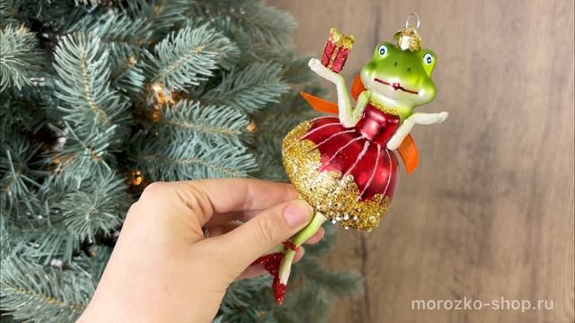 Ёлочная игрушка КВАКУШКА С ПОДАРОЧКОМ, стекло, 15 см, 5010019