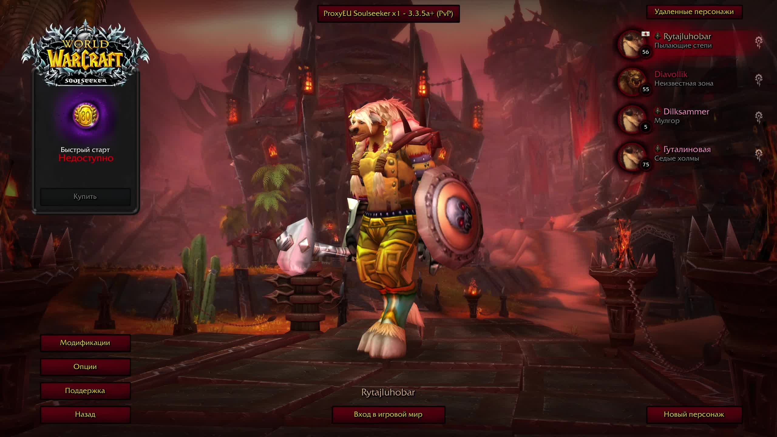 хардкор от первого лица World of Warcraft WOTLK x1 Sirus SOULSEEKER качаемся занова воин 56-58 лвл