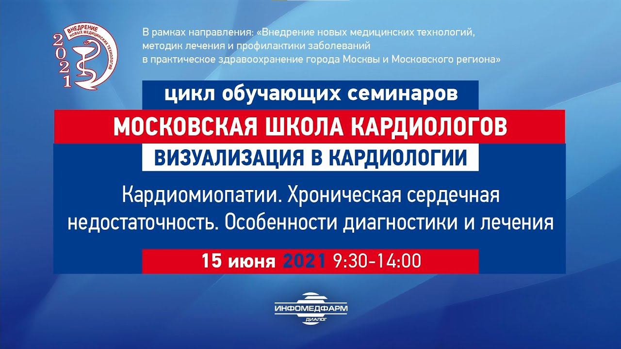 15.06.2021 Московская школа кардиологов. Визуализация в кардиологии Кардиомиопатии. Хроническая сердечная недостаточность. Особенности диагностики и лечения Критерии постановки диагноза СН, классификация сердечной недостаточности, симптомы СН с сохранной фракцией выброса при наличии патологии миокарда/перикарда, причины СН с сохранной фракцией выброса, алгоритм диагностики, клинические примеры. О возможностях экокардиографии в диагностике СН с сохранной фракцией выброса рассказывает Сергей Алексеевич ЯКОВЛЕВ, врач ультразвуковой диагностики ГБУЗ «ГКБ им. И.В. Давыдовского ДЗМ»