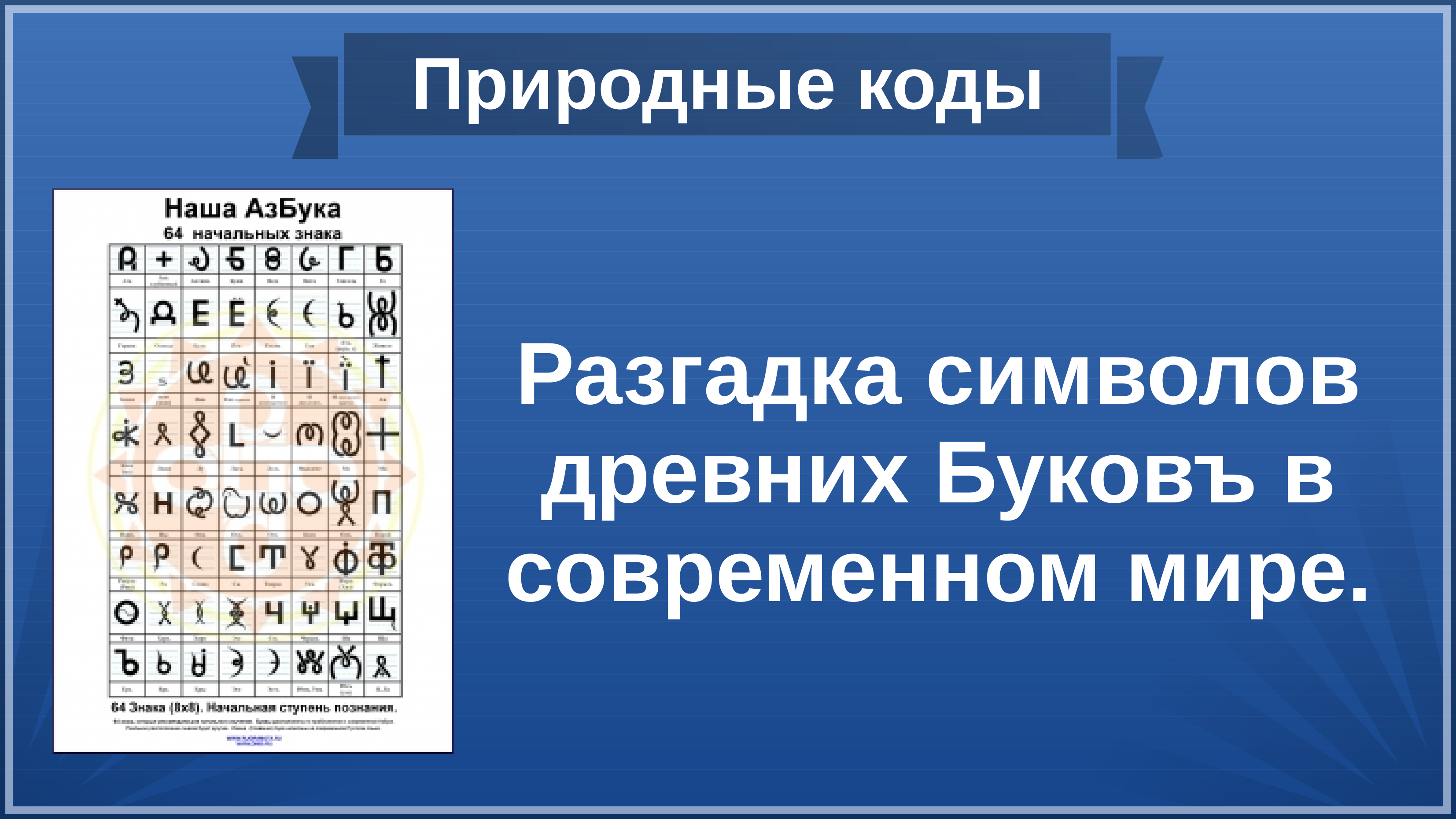 Часто бывает спрашивают доказательство существования этих знаков. Когда вы запомните формы букв, вы эти знаки начнёте видеть везде в природе. Деревья в виде таких-то знаков. Солнышко, например, на рассвете встаёт, и вы в лучах солнца и на самом диске будете видеть разные буквы, разные знаки. То есть, по сути, изначально буквы, они как раз брались из природы. Все эти первоэлементы есть в природе. Когда вы формы букв запомните, вы их начнёте везде зрить. На солнце, на небе, в природе будете видеть. В танцах эти буквы будете видеть, в хороводах будете видеть. До наших дней дошли различные древние хороводы, дошли различные танцы. И в виде движений там зашифрованы достаточно уникальные знания.