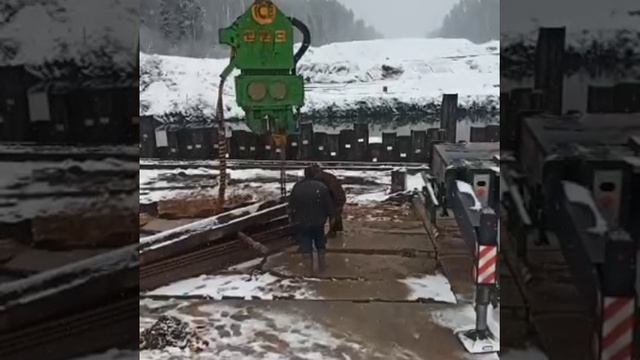 Звоните +7 (985) 185-77-77 Погружаем шпунт Ларсена крановым вибропогружателем ICE-223 🏗