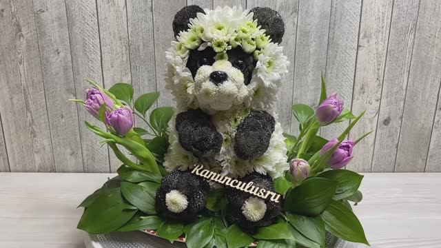 Авторская фигурка панды из живых цветов - кустовых хризантем. Детальнее о товаре https://ranunculus.ru/igrushki-iz-tsvetov/panda-iz-zhivykh-tsvetov/ Смотрите также: Игрушки из живых цветов https://ranunculus.ru/igrushki-iz-tsvetov/ Животные из цветов https://ranunculus.ru/igrushki-iz-tsvetov/zhivotnye-iz-tsvetov/ Сайт https://ranunculus.ru