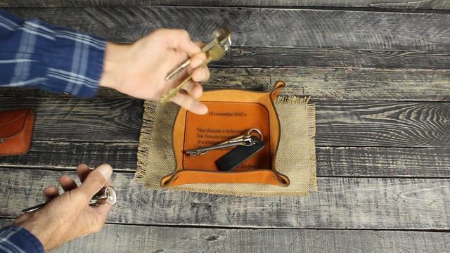 Вам выбирать монетница или ключница, а может быть и копилка. Мы в ВК https://vk.com/ddmotovilov Делаем такие ключницы - лотки из шорно седельной кожи 3,5-4 мм. Возможно сделать лазерную гравировку текста или рисунка. У нас есть магазин www.livemaster.ru/dimamotovilov