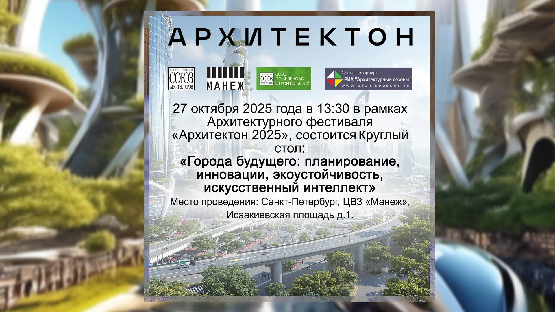 27 октября 2025 в 13:30-16:30 в рамках Архитектурного фестиваля «Архитектон 2025», Совет по зелёному строительству Санкт - Петербургского Союза Архитекторов провёл Круглый стол: «Города будущего: планирование, инновации, экоустойчивость и искусственный интеллект» Организаторы: Совет по зелёному строительству Санкт-Петербургского Союза архитекторов, РИА «Архитектурные сезоны». Место проведения: ЦВЗ «Манеж», СПб, Исаакиевская пл., 1. Модератор: Председатель Совета по зелёному строительству Санкт-Петербургского Союза Архитекторов Сергей Викторович Цыцин Современные мегаполисы — это центры инноваций, культурной жизни и экономического развития, однако рост урбанизации ставит перед ними множество вызовов. По прогнозам Всемирного банка, к середине XXI века каждые 7 из 10 человек будут жить в городах, что увеличит спрос на ресурсы и создаст новые вызовы, связанные с экологией, транспортом и инфраструктурой. Развитие мегаполисов становится не просто урбанистическим процессом, а частью глобальной повестки по созданию устойчивого будущего для всех. По мнению многих экспертов в ближайшем будущем облик современных городов будут формировать: новые требования к качеству жизни горожан, в целом во всех его аспектах, а также эффективное расходование ресурсов и цифровая урбанистика. В стратегии развития городов будущего в помощь таланту архитектора и градостроителя приходит искусственный интеллект - самый мощный на сегодня инструмент в реализации сложных урбанистических задач. Решение этих современных планировочных задач, принципов экоустойчивости, использование инновационных технологий и искусственного интеллекта в градостроительстве приобретает особое значение и требует профессионального обсуждения в широкой среде экспертов: архитекторов, власти и бизнеса. Разделы круглого стола: 1. Smart city. Планирование новых и реновация существующих городов с учётом достижения в области Искусственного Интеллекта и зелёного строительства. Роль ИИ в управлении современным мегаполисом: (транспортные, инженерные системы и вопросы безопасности города). 2. Современные градостроительные тенденции в области экоустойчивой архитектуры 3. Информационное моделирование зданий по BIM технологиям. Приглашаем Вас к участию в круглом столе! С уважением, Председатель Совета по зелёному строительству Санкт - Петербургского Союза Архитекторов Сергей Викторович Цыцин Редактор РИА «Архитектурные сезоны» PR -специалист ООО «АМЦ-ПРОЕКТ» Гуляева Елена Викторовна == Трансляцию осуществляет студия Санкт-Петербургские эфиры https://spb.ag/architecton