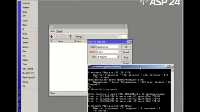 Mikrotik. Манипуляции с DNS. Добавляем статические DNS записи. Видео к статье: http://asp24.com.ua/obzor/mikrotik-statji/ip/dns/ mikrotik-manipulyacii-s-dns-dobavliaem-statichesk ie-dns-zapisi/ от asp24.com.ua, asp24.ru