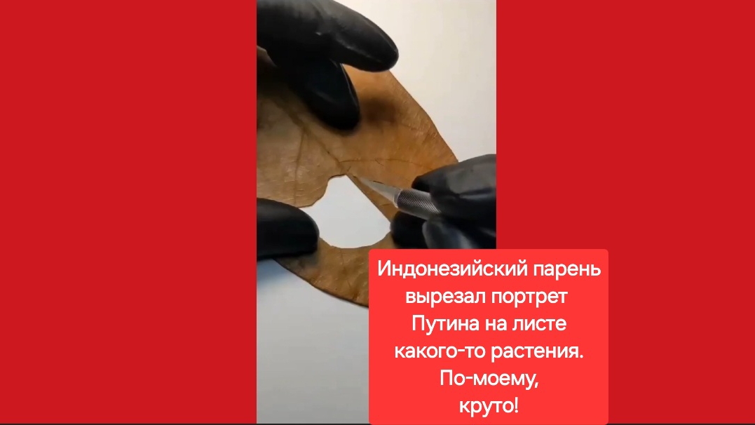 В Индонезии парень вырезал портрет Путина на листе какого-то растения. Россия. Путин.