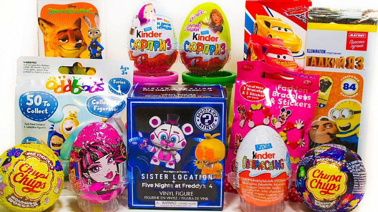 В этом видео мы откроем очень разные Киндер Сюрпризы: Маша и Медведь, Барби, Фанко Мистери Минис Пять Ночей С Фреди 4 серия + Сестринская Локация (Funko Mystery Minis Sister Location + Five Nights at Freddy's 4), Чуддики Оддбодсы, машинки Тачки 3, Зверополис, Фиксики, Свинка Пеппа, Минни и Микки Маус, карточки Гадкий я 3 из магазина Магнит, Монстер Хай, и старый раритетный Киндер Сюрприз! __________________ Смотри больше наших видео! Плейлист Киндер Сюрприз Микс: https://goo.gl/pZmeQJ Плейлист Сюрпризы Чупа Чупс: https://goo.gl/4u3GKQ Плейлист Сюрпризы Свитбокс: https://goo.gl/f4VZHi Плейлист Хэппи Мил: https://goo.gl/wTWxEG Плейлист Киндер Сюрприз Челлендж: https://goo.gl/EFeKNV __________________________________________ Канал Toys in Surprise Eggs - это канал о сюрпризах. Киндер Сюрпризы, шоколадные яйца, шоколадные шары, пакетики с сюрпризами, пластиковые яйца, сюрпризы в коробочках - сюрпризы по популярным мультфильмам, фильмам, сказкам, и коллекциям игрушек - самые простые и самые необычные сюрпризы ждут Вас на нашем канале. Подписывайтесь! Будет интересно!