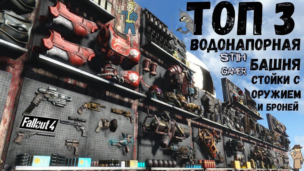 Fallout 4 [ТОП-3] Моды для Строительства ➤ Водонапорная башня ➤ Стойки с Оружием и Бронёй