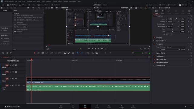 Полезный совет для вертикальных видео в DaVinci Resolve Free