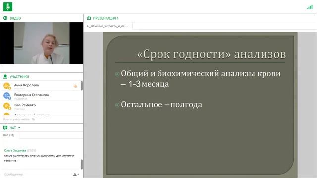 В этом вебинаре кандидат медицинских наук, врач-инфекционист, редактор сайта ARVT.ru Екатерина Степанова подробно рассказала о следующем: 1. обследование перед терапией: • что и почему важно знать перед началом терапии; • врач решает, какие анализы делать — это вопрос безопасности пациента; • есть ли «минимум» анализов; • почему разным пациентам один врач может назначить разный комплект анализов; • «срок годности» анализов. 2. лечение: • цель лечения; • стандартная терапия и препараты прямого противовирусного действия — в чем разница? • что такое межлекарственная совместимость? • что такое дженерики и чем они отличаются от «оригиналов»? • почему важен врачебный контроль во время терапии? 3. страшные слова и стоит ли их бояться: • неответ, • возврат, • вирусный прорыв, • реинфицирование (повторное заражение), • мутация, • резистентность, • иммунитет. 4. контроль по окончании лечения.
