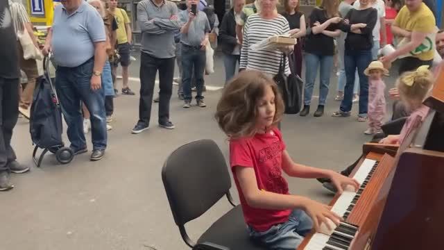 Девочка играет на улице "Рок вокруг часов" - фортепианно, кавер-версия, уличная музыка