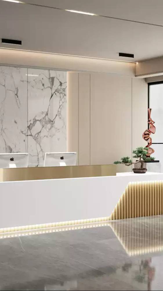 Стойка ресепшен из МДФ округлой формы с подсветкой, для сотрудников предусмотрены ящики на замке. На выбор множество размеров и цветов. Код товара: 40144-32 https://lalume.ru/mebel/rs40144-32.html