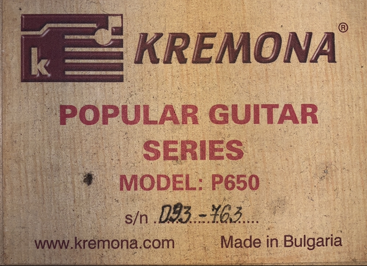 Гитара Классическая Kremona P650 Производство: Болгария Количество струн: 6 Размер: 4/4 Мензура: 650 мм Форма: классическая Верхняя дека: кедр массив Нижняя дека и обечайка: клен Накладка грифа: твердые породы дерева Цвет верхней деки: натуральный Покрытие: глянцевая