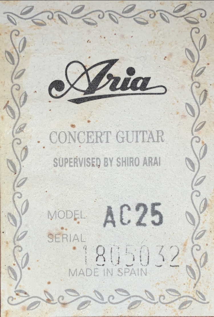 Гитара Aria AC25 Тип: Классическая гитара Верхняя дека - кедр. Нижняя дека и обечайка - красное дерево. Гриф - красное дерево. Накладка грифа: палисандр Сделано в Испании