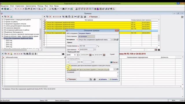 Демо-версию ПО "Кадровый учет" можно скачать по ссылке http://www.kostanaysoft.com/load/1-1-0-15 ******************************** Оформить заявку на программы KostanaySoft удобно по ссылке http://www.kostanaysoft.com/index/formuljar_zakaz/0-15 ******************************** Описание модулей ПО "Кадровый учет" для организаций всех форм собственности РК см. по ссылке http://www.kostanaysoft.com/index/kadrovyj_uchet_kazakhstan/0-117 Авторское право на ПО "Кадровый учет" зарегистрировано в комитете интеллектуальной собственности см. по ссылке http://www.kostanaysoft.com/index/avtorskoe_pravo_licenzija/0-78 Форум по работе с программой "Кадровый учет" см. по ссылке http://www.kostanaysoft.com/forum/2 Группа в Одноклассниках для работников кадровой службы по ссылке https://ok.ru/kostanaysoft Группа в контакте для работников кадровой службы по ссылке https://vk.com/kadry_uchet Союз кадровиков в Казахстане на фэйсбуке по ссылке https://www.facebook.com/kadrovik.kz/ Страничка в инстраграмм @kadrovik_kz @kostanaysoft https://www.instagram.com/kadrovik_kz/