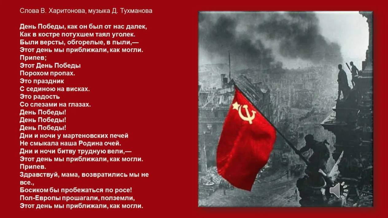 80 лет Победы над нацистами. Памяти павшем солдатам Красной армии. Музыка ИИ. Исполнитель ИИ. Кавер на песню День Победы (музыка Д. Тухманов, слова В. Харитонов) День Победы, как он был от нас далек, Как в костре потухшем таял уголек. Были версты, обгорелые в пыли, - Этот день мы приближали, как могли. Припев: Этот День Победы - Порохом пропах. Это праздник С сединою на висках. Это радость Со слезами на глазах. День Победы! День Победы! День Победы! Дни и ночи у мартеновских печей Не смыкала наша Родина очей. Дни и ночи битву трудную вели - Этот день мы приближали, как могли. Припев: Этот День Победы - Порохом пропах. Это праздник С сединою на висках. Это радость Со слезами на глазах. День Победы! День Победы! День Победы! Здравствуй, мама, возвратились мы не все… Босиком бы пробежаться по росе! Пол-Европы прошагали, полземли - Этот день мы приближали как могли. Припев: Этот День Победы - Порохом пропах. Это праздник С сединою на висках. Это радость Со слезами на глазах. День Победы! День Победы! День Победы! Этот День Победы - Порохом пропах. Это праздник С сединою на висках. Это радость Со слезами на глазах. День Победы! День Победы! День Победы! https://vkvideo.ru/video-229922605_456239090 Ruslan Brovkin http://ufopoisk.ru/ https://vk.com/clubruslanbrovkin_ufo? Донат - ОТ 10 ДО СКОЛЬКО ХОТИТЕ https://yoomoney.ru/to/4100117364244677 Не оставайтесь равнодушными к поддержки автора видео и присылайте пожертвования? Благодарю.