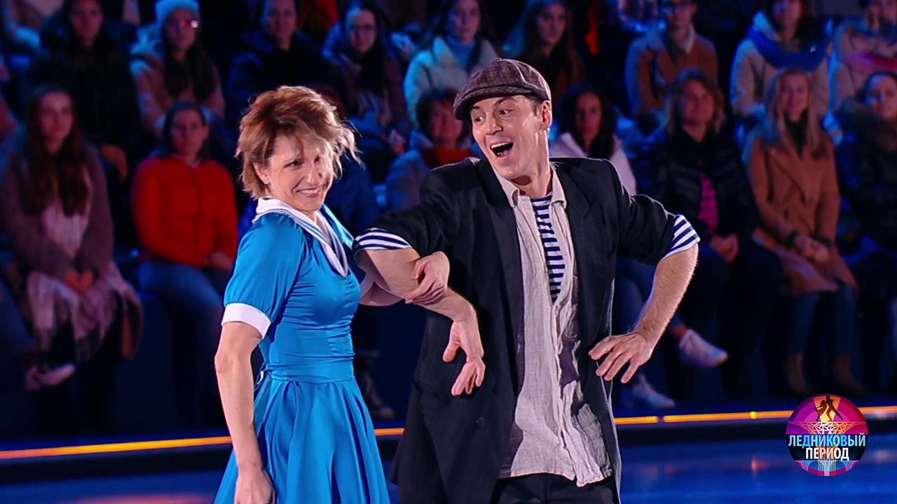 На льду — чемпионка Европы Яна Хохлова и актер Гела Месхи. Пара выступает под песню «Шаланды» в исполнении Марка Бернеса.