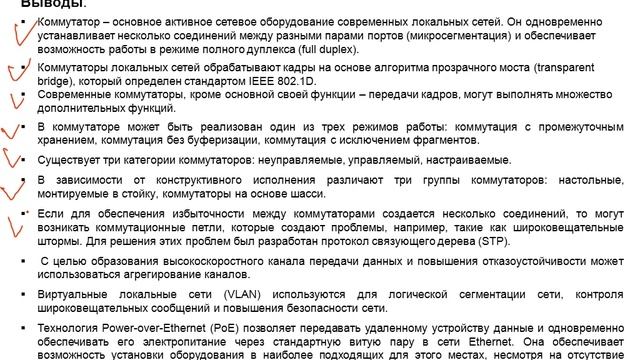 6.6. Технологии и устройства канального уровня модели OSI. Выводы